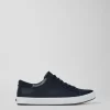Blue calfskin leather and nubuck sneakers for men with OrthoLite® Recycled™ footbeds and rubber outsoles.