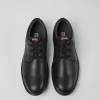 Black calfskin shoes for men with removable footbeds and EVA outsoles.