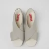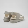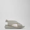 Grey sandal for women. Upper made of crossed leather straps. With rear fastening and open toe. Grey wedge outsole made of 90% EVA and 10% rubber.