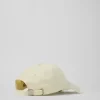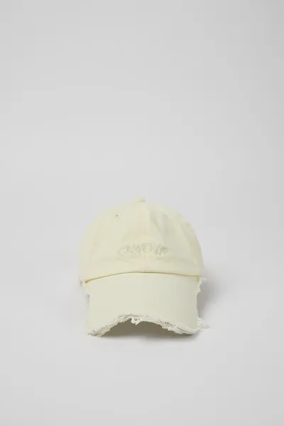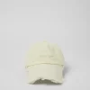 Beige cap in 100% organic cotton with distorted cut-out brim.
