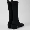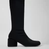 Black women’s booties with recycled polyester & nylon, recycled OrthoLite® footbeds, and TPU outsoles.
