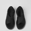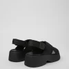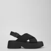 Black women’s cross-strap sandals with recycled neoprene, recycled polyester & PU linings, and EVA footbeds and outsoles.