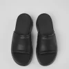 Black women’s sandals with water-saving leather, leather linings, and EVA footbeds and outsoles.