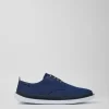 Blue textile and nubuck men’s shoes with OrthoLite® Recycled™ non-removable footbeds and XL EXTRALIGHT® Organix 3.0 outsoles (30% biocircular compounds)