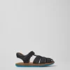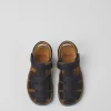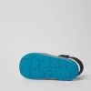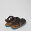 Blue leather kids’ sandals with a hook-and-loop closing system and rubber outsoles (20% recycled).