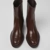 Burgundy leather women’s boots with OrthoLite® Recycled™ non-removable footbeds and rubber outsoles (20% recycled).