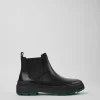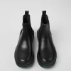 Black leather women’s ankle boots with EVA midsoles, OrthoLite® Recycled™ footbeds, and Michelin rubber outsoles (27% natural).