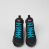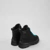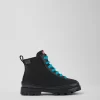 Black textile and leather kids’ ankle boots with PrimaLoft® technology, OrthoLite® Recycled™ removable footbeds, and rubber outsoles.