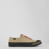 Camaleón 1975, the line inspired by the first Camper shoe, is today a symbol of Mallorca and the Mediterranean. This casual footwear icon reinvents itself without losing an iota of its natural simple sustainable essence. Inspired by the footwear people wore in the countryside more than a century ago. Its cotton is natural and its sole is made of recycled rubber.