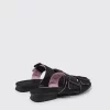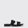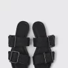 Black 100% recycled PET women’s sandals with 100% TPU outsoles (20% recycled).