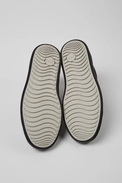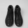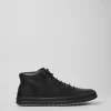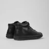Black calfskin leather ankle boots for men with OrthoLite® Recycled™ footbeds and rubber outsoles.