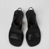 Black calfskin sandals for women with non-removable OrthoLite Recycled footbeds and XL EXTRALIGHT EVA outsoles.