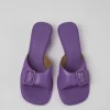 Purple leather women’s sandals with recycled OrthoLite® footbeds and 100% rubber outsoles.