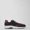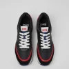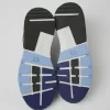 Multicolor textile and leather men’s sneakers with PU footbeds and EVA and rubber outsoles (30% recycled).