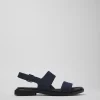Blue nubuck sandals for women with non-removable OrthoLite® Recycled™ footbeds and EVA outsoles.