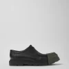 Black responsibly raised leather men’s shoes with removable toe caps, OrthoLite® Recycled™ removable footbeds, and rubber outsoles (40% natural, 23% recycled).