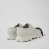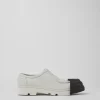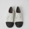 White non-dyed leather women’s shoes with removable toe caps, OrthoLite® Recycled™ removable footbeds, and rubber outsoles (40% natural, 23% recycled).