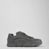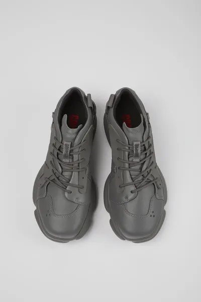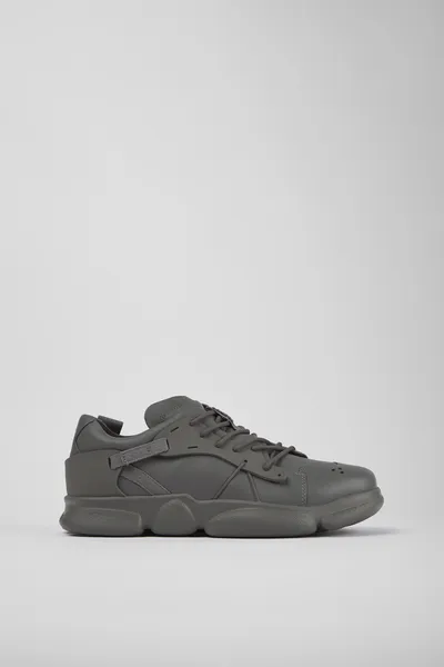Gray leather and textile men’s sneakers with OrthoLite® Recycled™ removable footbeds and XL EXTRALIGHT® Organix™ 3.0 outsoles (30% bio-circular compounds).