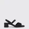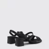 Black calfskin sandals for women with hook-and-loop system and TPU outsoles.