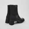 Black leather and recycled PET women’s boots with OrthoLite® Recycled™ non-removable footbeds, and rubber and ABS outsoles.