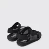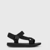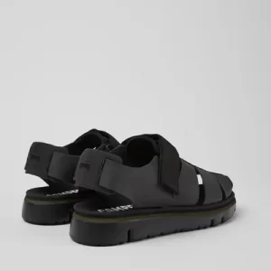 Black textile sandals for men with hook-and-loop system and EVA outsoles.