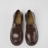 Burgundy leather women’s loafers with OrthoLite® Recycled™ non-removable footbeds and EVA outsoles.