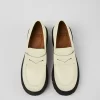 White leather women’s loafers with OrthoLite® Recycled™ non-removable footbeds and EVA outsoles.
