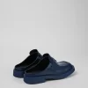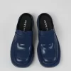 Blue leather loafer slide with recycled OrthoLite® footbeds and rubber outsoles.