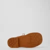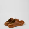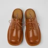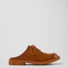 Brown leather clogs with rubber outsoles.