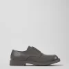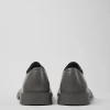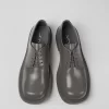 Gray leather lace-up shoes with rubber outsoles.