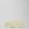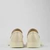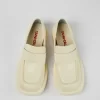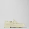 White leather moccasins with recycled OrthoLite® footbeds and rubber outsoles.