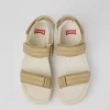 Beige leather women’s sandals with a hook-and-loop closing system and XL EXTRALIGHT® EVA outsoles (51% recycled).