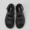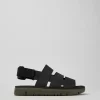 Black calfskin and textile sandals for men with hook-and-loop system and EVA outsoles.