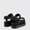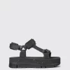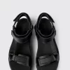 Black calfskin sandals for women with hook-and-loop system and EVA outsoles.