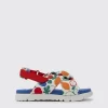 Multicolored recycled PET kids’ sandals with hook-and-loop closing system and 100% EVA outsoles.
