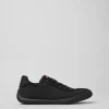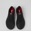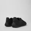 Black recycled PET women’s sneakers with OrthoLite® Recycled™ footbeds and rubber outsoles (23% recycled).