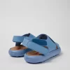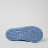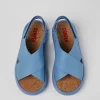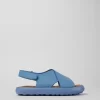 Blue leather women’s cross-strap sandals with cork-lined EVA footbeds, and XL Extralight® Organix™ 3.0 outsoles with 30% biocircular components.