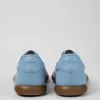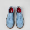 Blue women’s sneakers with water-saving leather, recycled OrthoLite® footbeds, and 100% rubber outsoles.