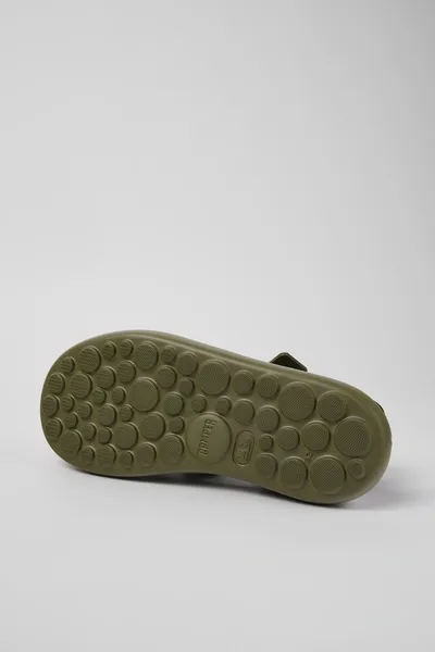 Green leather men’s sandals with ankle straps, cork-lined EVA footbeds, and XL EXTRALIGHT® Organix™ 3.0 outsoles with 30% biocircular components.