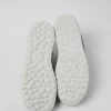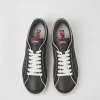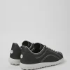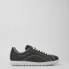 Dark gray leather men’s sneakers with removable PU footbeds and EVA outsoles.