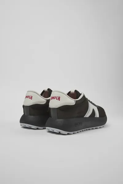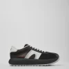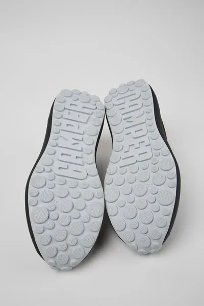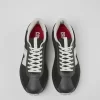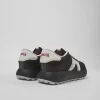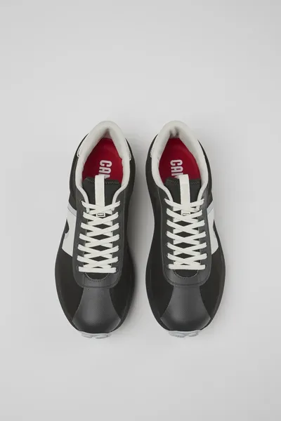 Black men’s sneakers with recycled polyester & TPU film using stitch-free technology, lace closures, recycled OrthoLite® footbeds, and rubber/EVA outsoles.