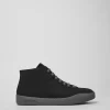 Black textile sneaker boots for men with removable OrthoLite® Recycled™ footbeds, elastic laces and EVA outsoles (20% recycled).