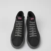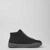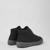 Black textile sneaker booties for women with OrthoLite® Recycled™ footbeds, elastic laces and EVA outsoles.