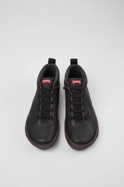 Black leather and recycled PET women’s sneakers with GORE-TEX technology, OrthoLite® Recycled™ footbeds, EVA midsoles, and Michelin rubber outsoles (27% natural).