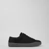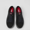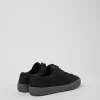 Black recycled PET women’s sneakers with OrthoLite® Recycled™ footbeds, elastic laces and EVA outsoles (20% recycled).