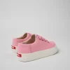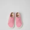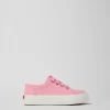 Pink kids’ sneakers with recycled cotton, lace closures, OrthoLite® Recycled™ footbeds and 100% rubber outsoles.
