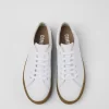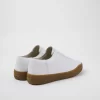 White leather women’s shoes with OrthoLite® Recycled™ removable footbeds and rubber outsoles.