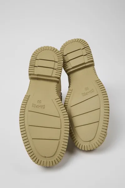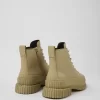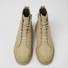 Beige leather women’s ankle boots with OrthoLite® Recycled™ removable footbeds and EVA outsoles.