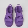 Purple women’s cross-strap sandals with recycled polyester, EVA footbeds and 100% EVA outsoles.