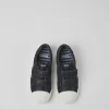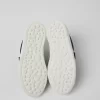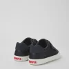 Blue leather kids’ shoes with OrthoLite® Recycled™ removable footbeds and rubber outsoles.